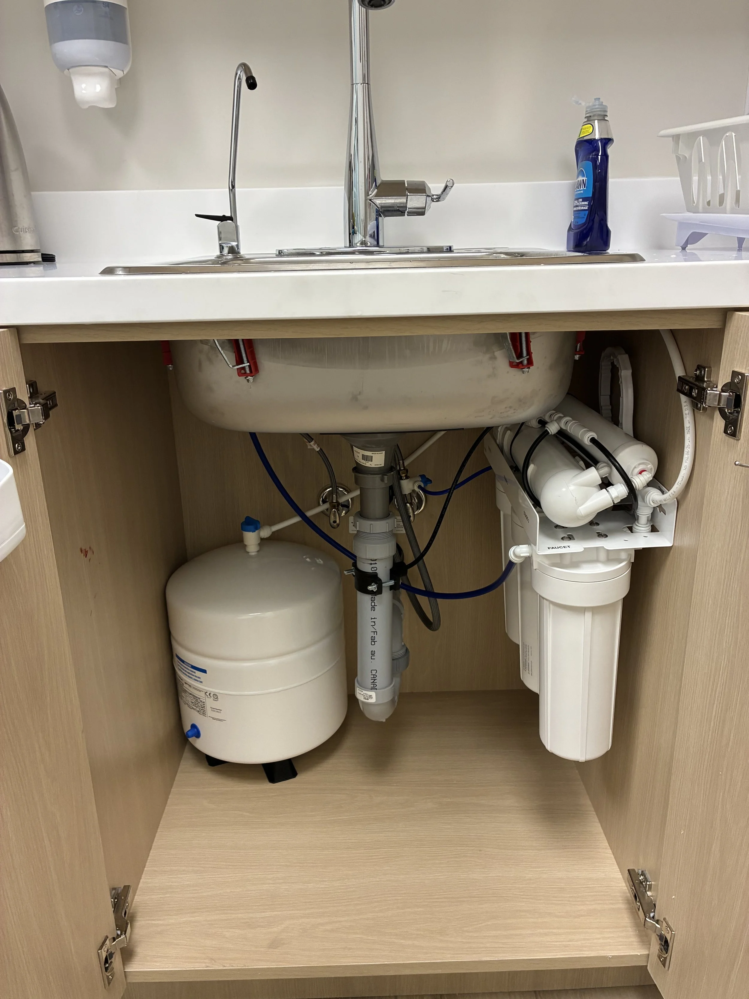 Our residential system includes all of the benefits of the commercial system, in a smaller package that fits under most cabinets. It comes with a 4 gallon storage tank, drinking water faucet and a kit to install it on existing water supply/drain lines under your kitchen sink. Bypass valve, pressure gauges and pumps not included, as they aren’t necessary in a low-volume setting. This system is perfect for home, office, or low-volume restaurant use.
